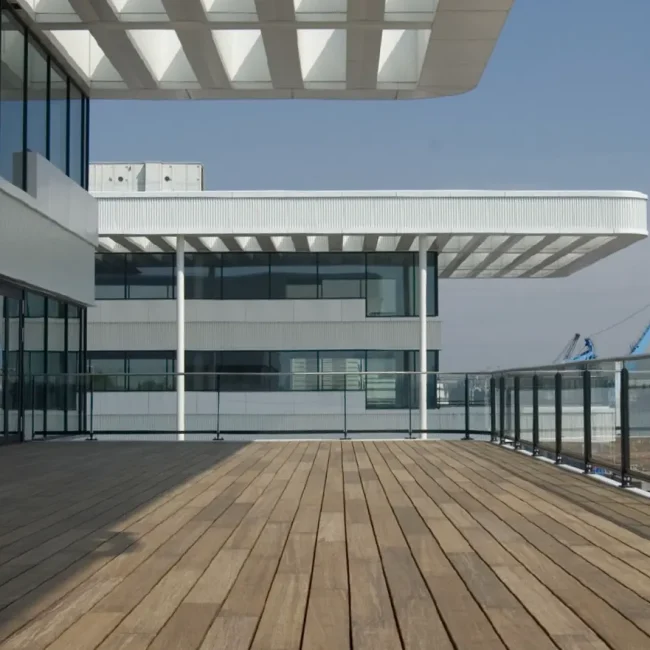 - Madera Termotratada (Lunawood) y Bambú (Moso): Materiales como la madera termotratada o los decks de bambú macizo son diseñados para una notable estabilidad y dureza, haciéndolos perfectos para revestimientos exteriores y terrazas que necesitan resistir los cambios de temperatura y humedad sin deformarse.