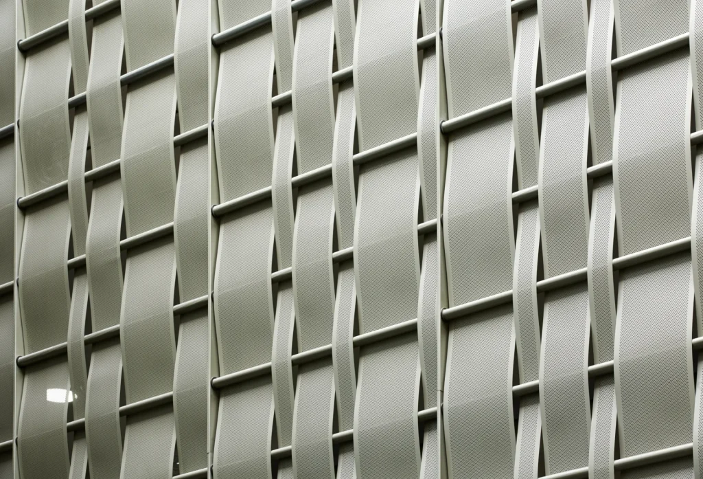 - Diseño Tipo Tejido a Gran Escala: El sistema se compone de flejes verticales entrelazados por elementos de sujeción horizontales, creando una apariencia similar a una malla o un tejido. Esta característica única permite generar transparencias y opacidades, ofreciendo un gran potencial de diseño.