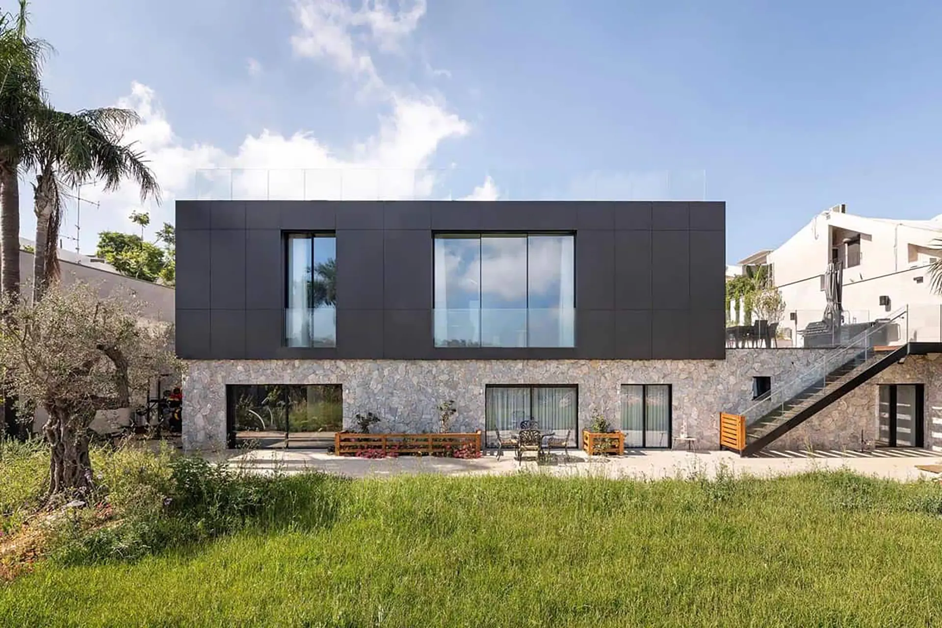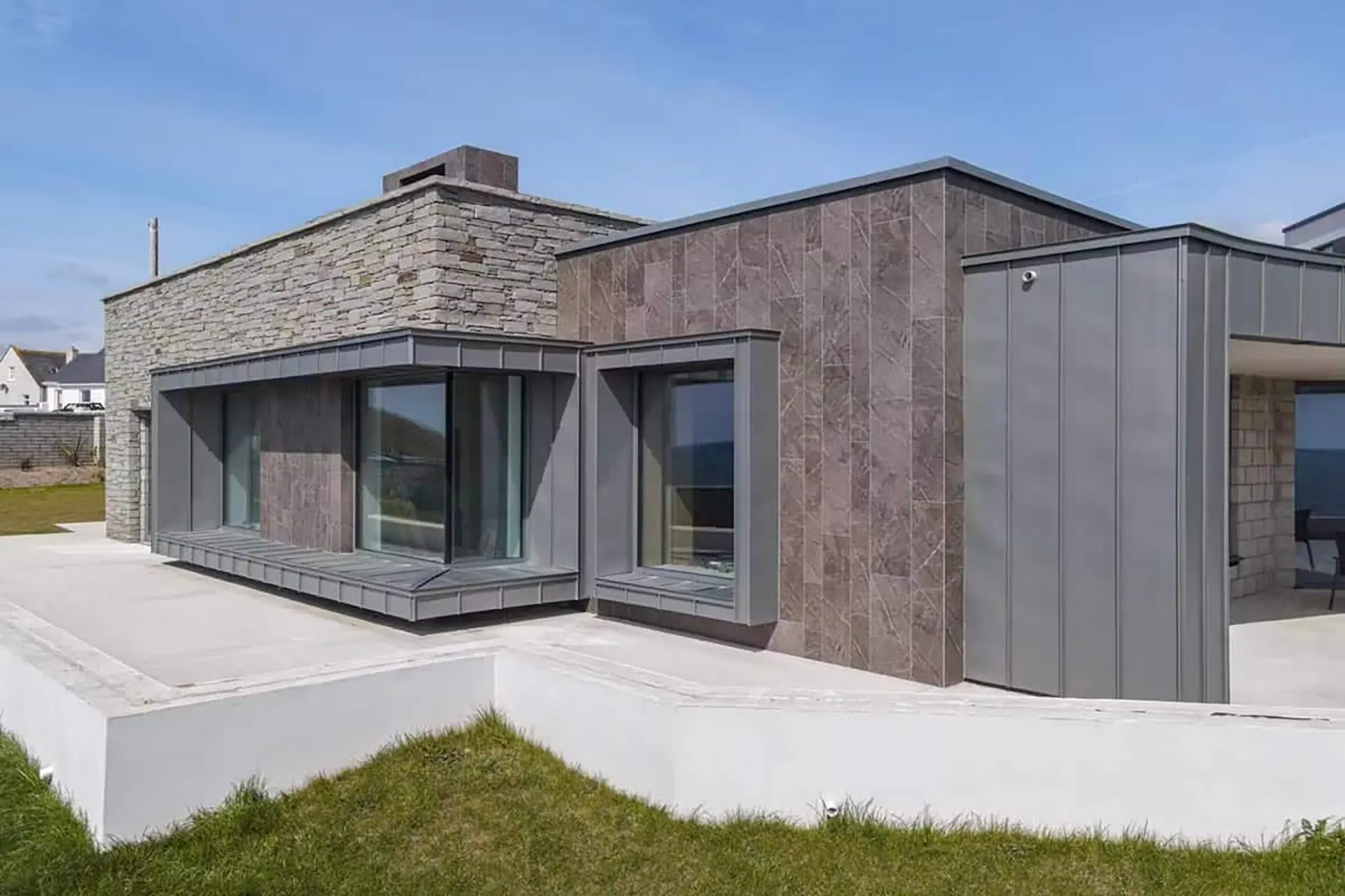 - Estética y Diseño: Los paneles de Dekton permiten una gran continuidad visual y una uniformidad de tono en toda la fachada. Su sistema de fijación oculta y las juntas mínimas entre piezas aseguran un resultado estético impecable.