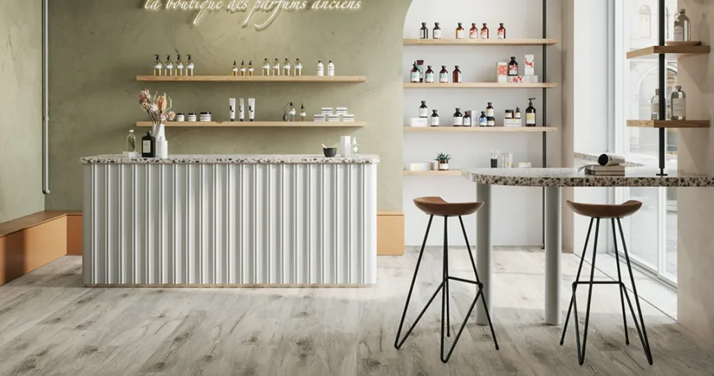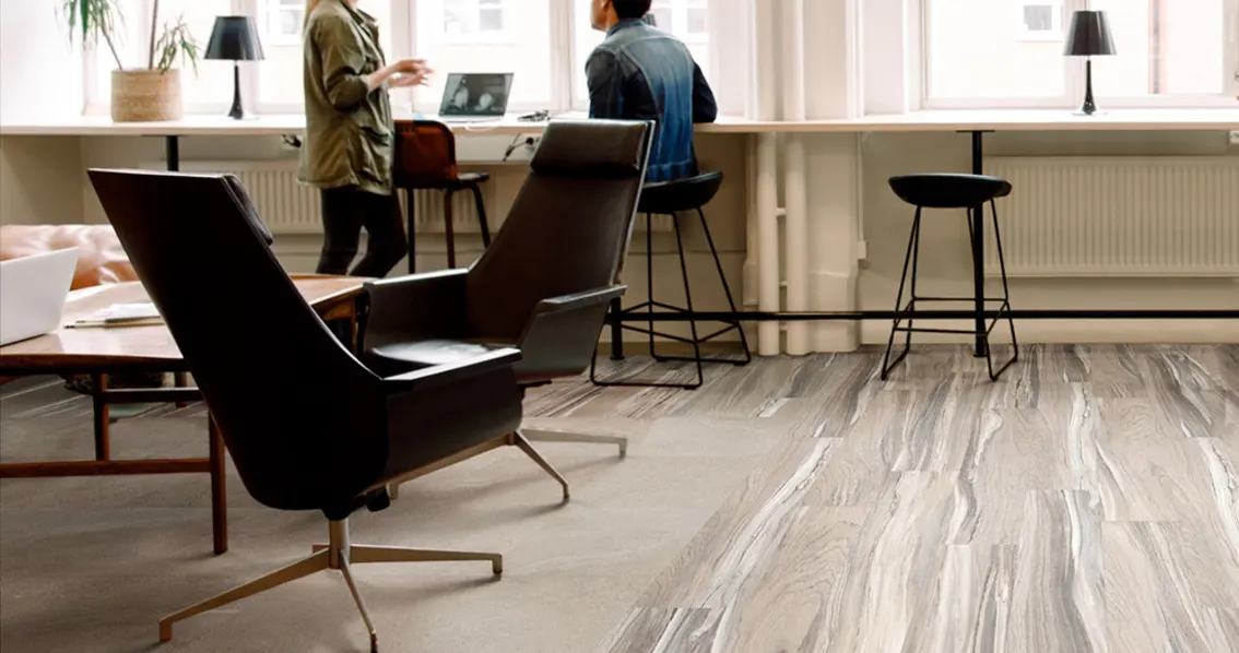 El LVT Creation 55 de Hunter Douglas es la solución ideal para proyectos comerciales y de alto tráfico que buscan un piso con una estética de diseño avanzada, durabilidad excepcional, facilidad de mantenimiento y un fuerte compromiso con la sostenibilidad y el bienestar de los usuarios.