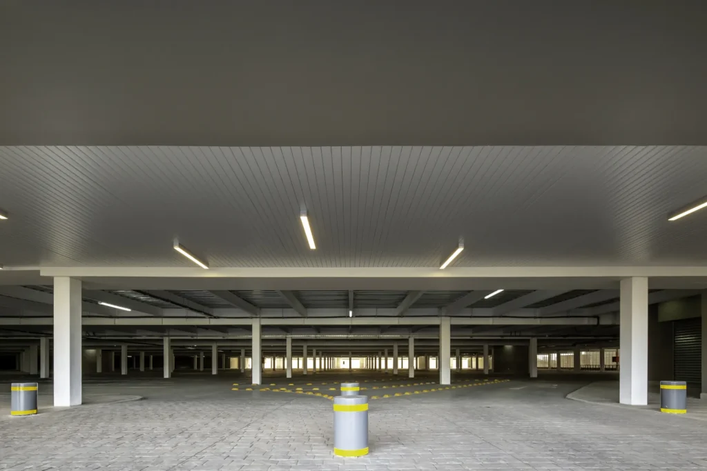 - Versatilidad de diseño: Los paneles pueden combinarse con tapajuntas para crear una superficie visualmente cerrada o, sin ellos, para lograr un efecto de cielo abierto. Su diseño también permite adaptaciones a diseños curvos.