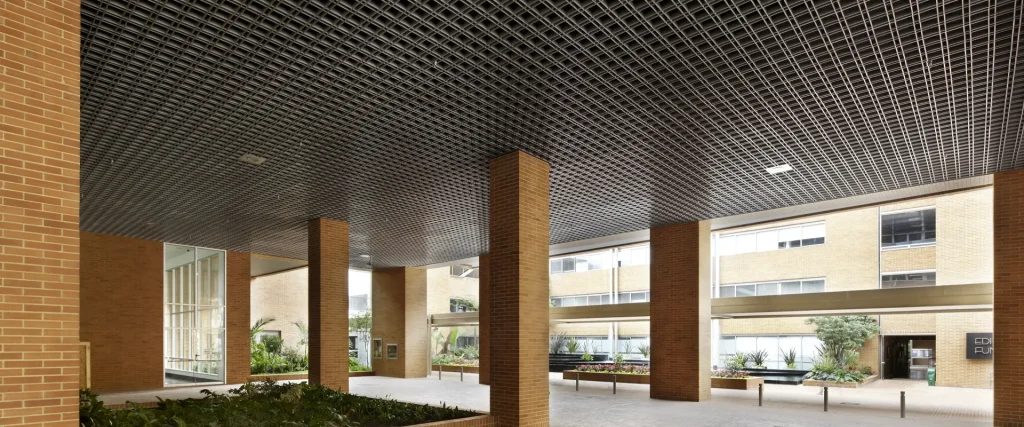 El sistema de cielos metálicos de celda abierta Cell y Minicell de Hunter Douglas es una solución versátil y liviana, ideal para espacios amplios que requieren una estética moderna y funcional. Su diseño de grilla o reticular, formado por perfiles en forma de U, crea un manto visualmente ligero y transparente que, además, permite un acceso total y fácil a las instalaciones del pleno.
