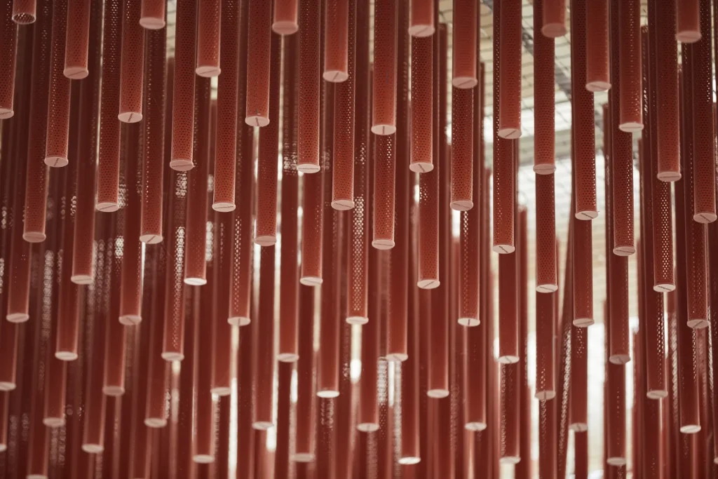 - Flexibilidad de instalación: Los paneles tubulares se pueden instalar de forma horizontal o vertical, con una separación variable según los requerimientos del proyecto, lo que permite crear diseños personalizados y únicos.