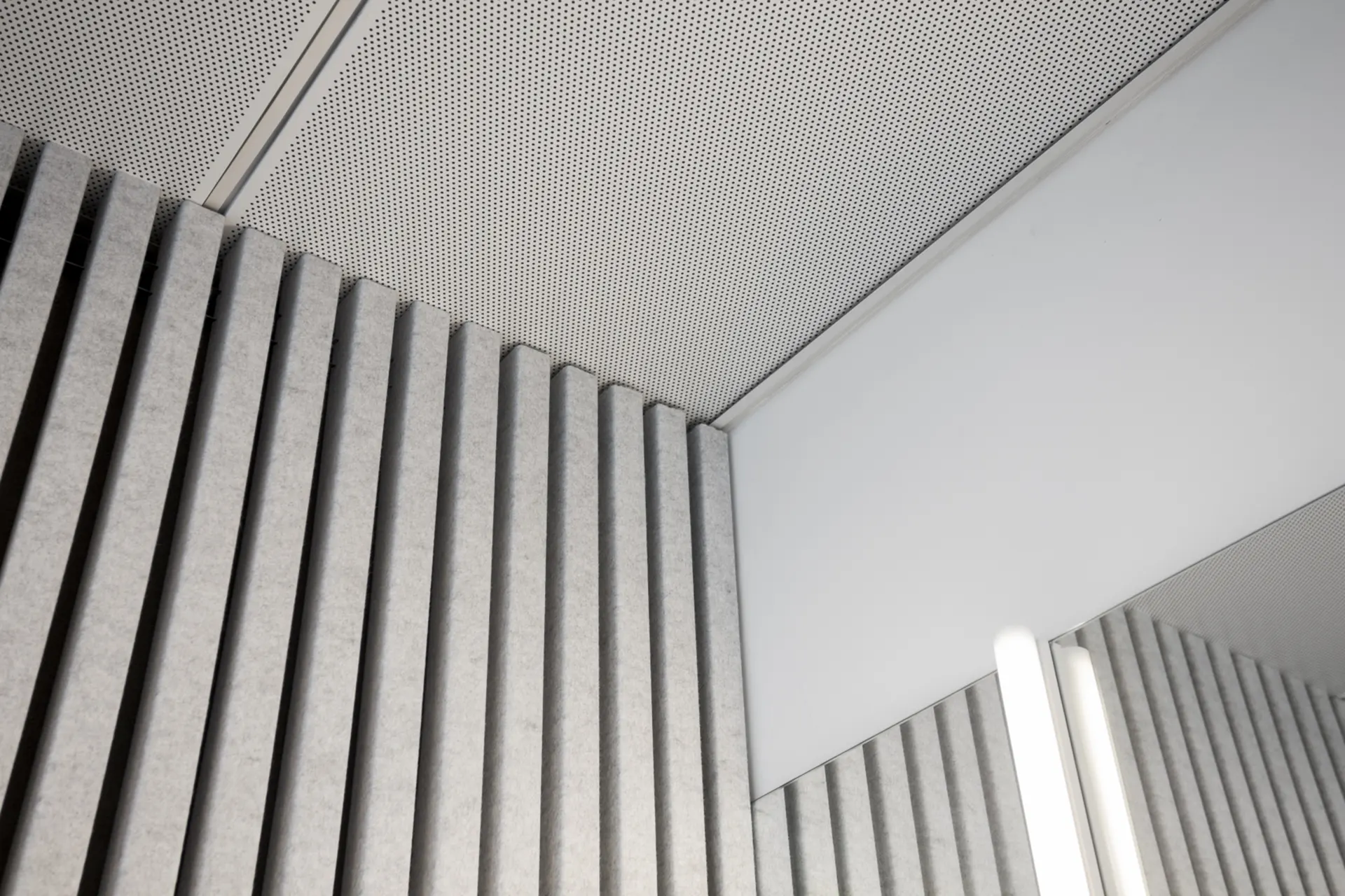 - Excelencia Acústica: El fieltro es un material con altas propiedades de absorción acústica, lo que convierte a Heartfelt en una solución eficaz para controlar la reverberación y reducir el ruido en espacios como oficinas, escuelas y hospitales, contribuyendo al bienestar y la productividad.