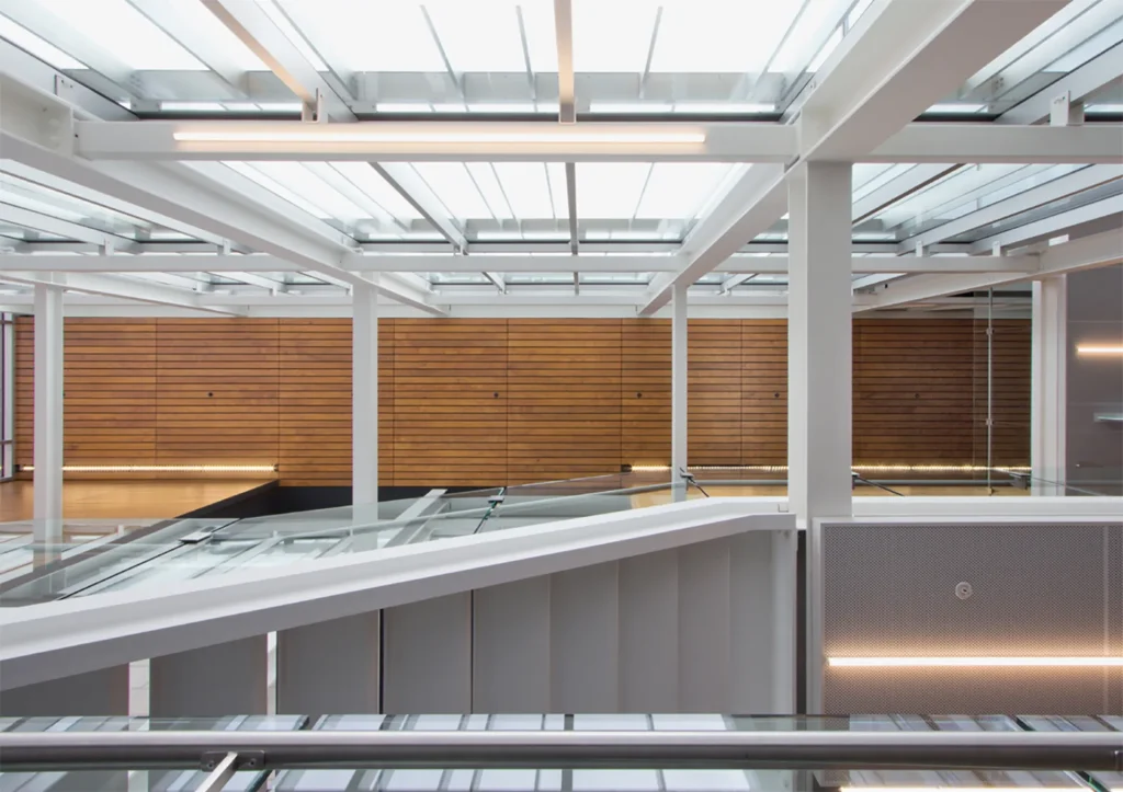 - Versatilidad de Uso: Existen dos tipos principales de paneles para interiores. NATURPANEL-W es perfecto para zonas de alto tráfico como oficinas, museos y hoteles, mientras que NATURHARDPANEL-W es altamente resistente a la humedad, lo que lo hace óptimo para baños, gimnasios, saunas y piscinas.